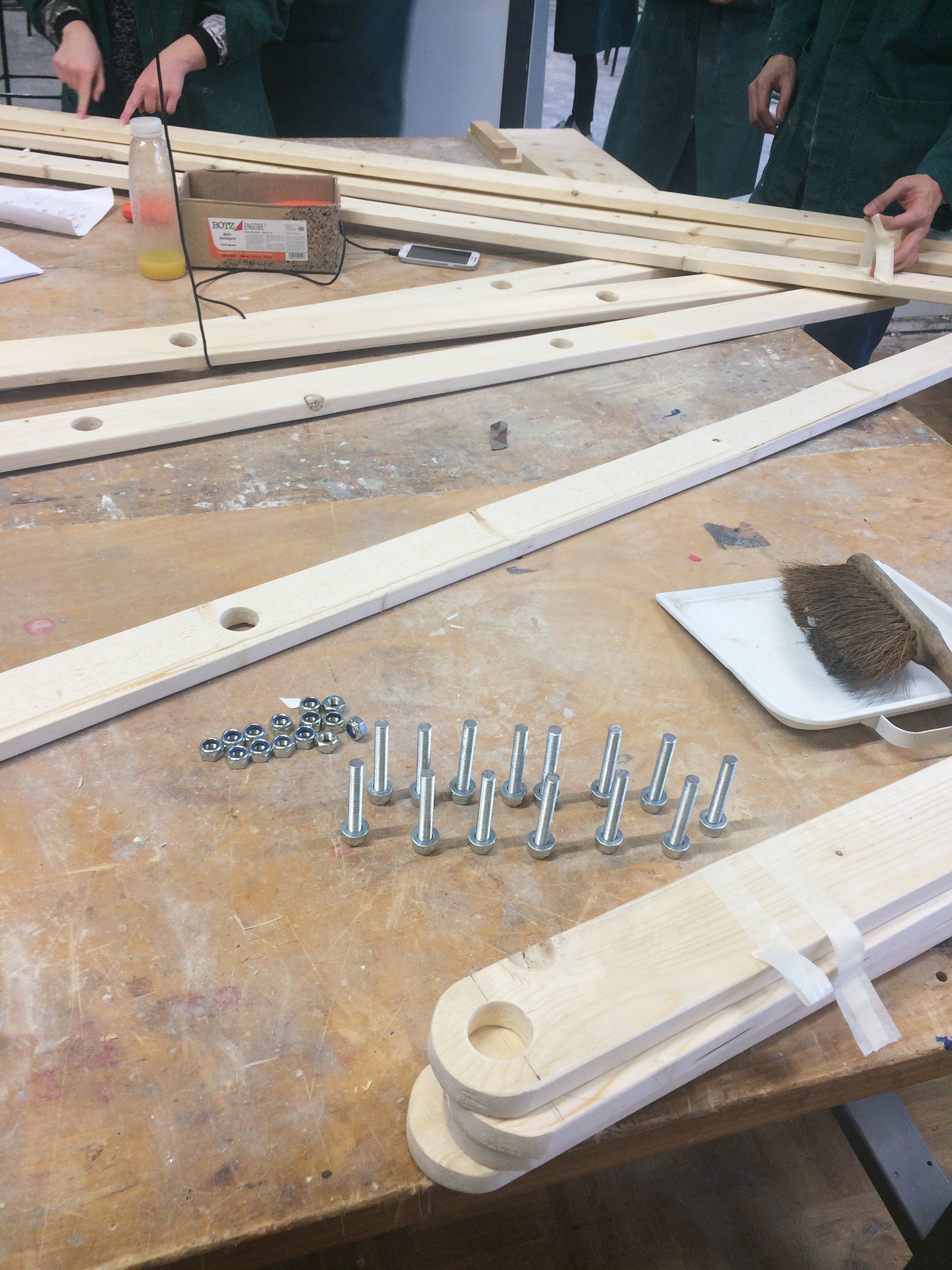 Can you imagine to live on 20 m² or less? And can you imagine how to furnish this tiny living space? This is a challenge that dwellers of micro apartments face all over the world! New York, London or Shanghai – these are only a few metropolises facing a great housing shortage due to increased urbanization. The solution so far: micro apartments. The so-called ‚apartments‘ are often not bigger than 20 m². Furnishing these living spaces often ends up with expensive tailor made solutions. But that‘s not suitable anymore for our today‘s society where going global and moving a lot is the order of the day. The solution is called „TwoToFive“! Based on a scissor mechanism it offers flexibility as well as personalization for the user. The double layered scissor mechanism enables the user to adjust the system to the given wall space. By placing wooden pins onto the system it can be completed with all kinds of elements. The range of the elements covers basic needs like storing, cooking and relaxing as well as additional functions like wireless charging. „TwoToFive“ uses the entire width and height of the wall thus there is no loss in space. Next to that it can be easily reused in a new apartment as it is independent from the floor plan.