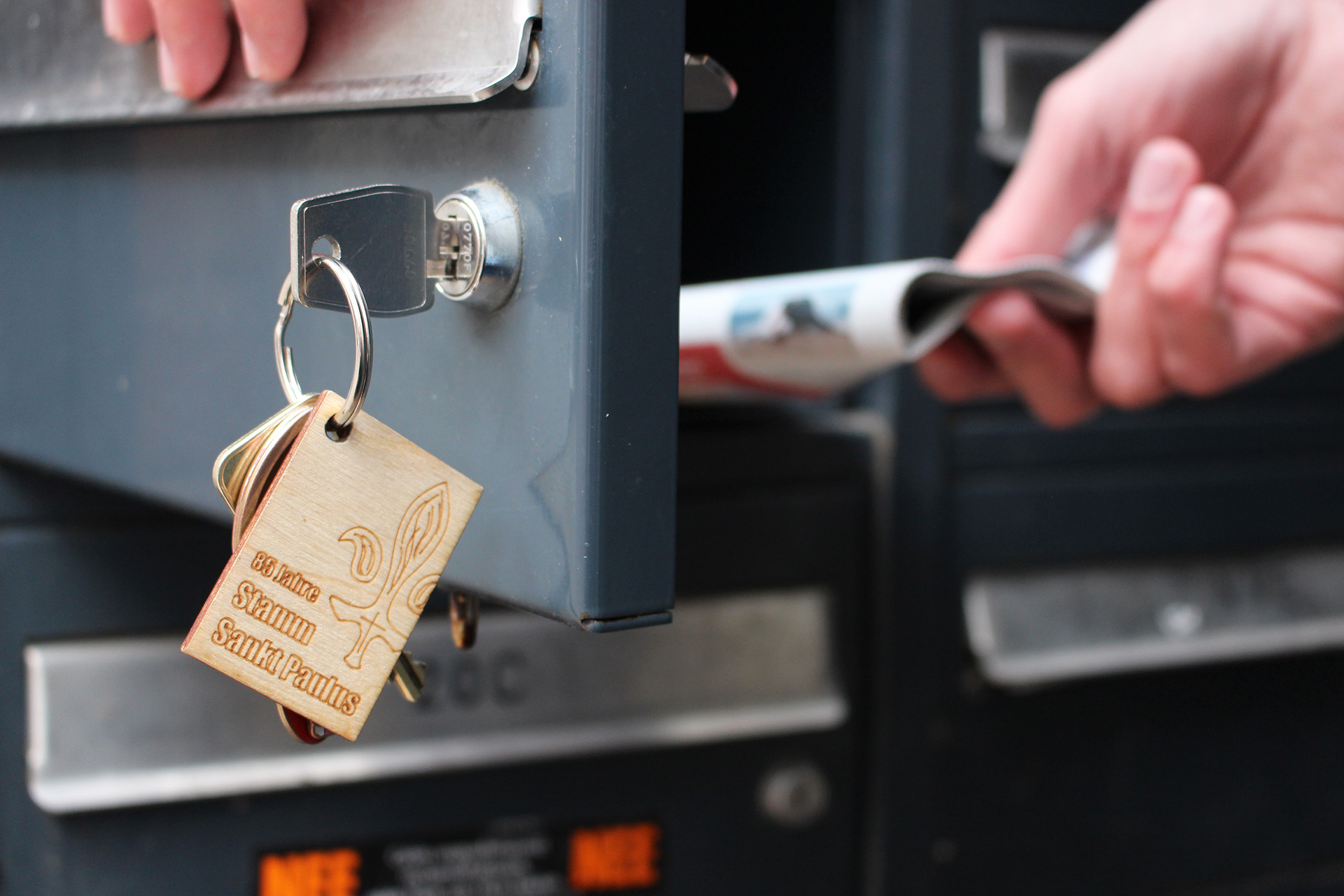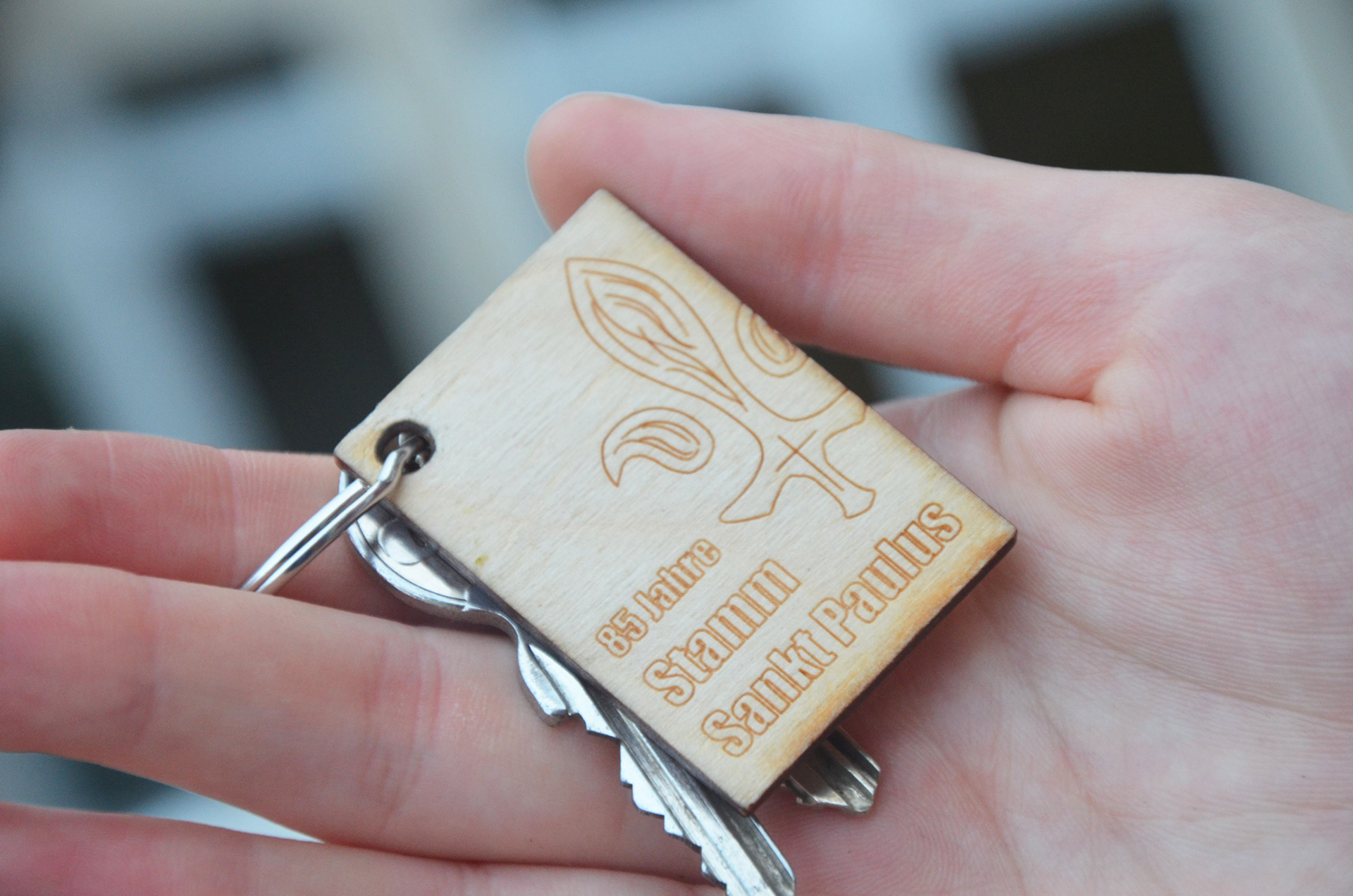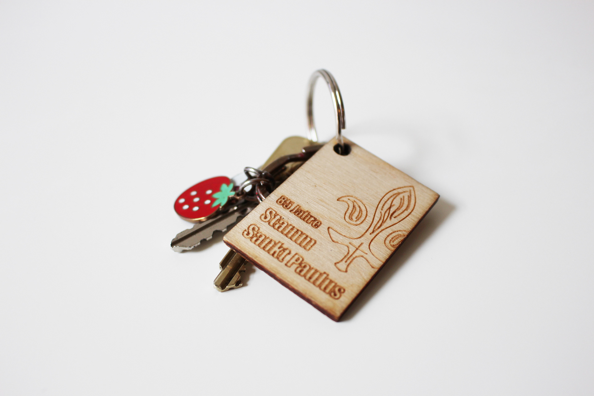 The key chain was designed as a give away on the occasion of the 85th anniversary of the Scout Group Saint Paul in Berlin. A lot of members also put the key chain on their Scout scarfs or Scout uniforms.