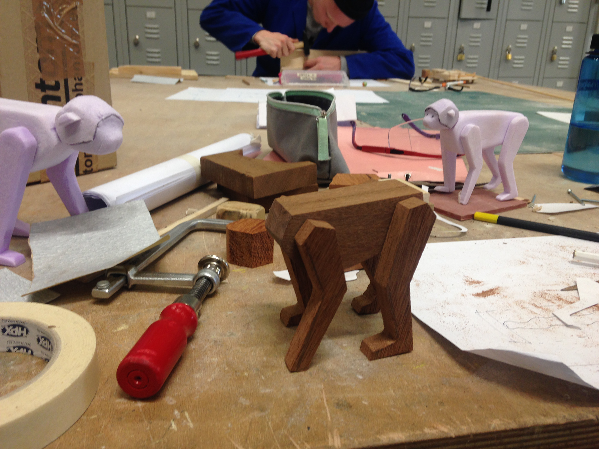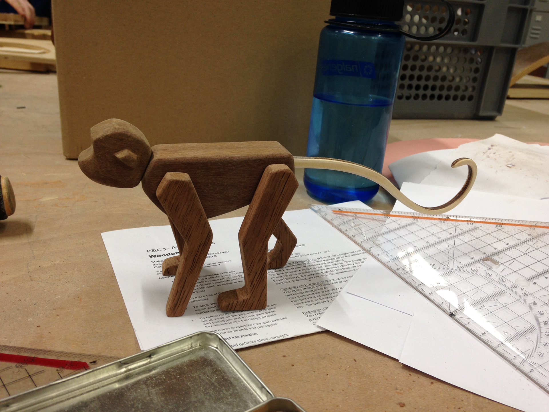 Have you ever seen children playing in the woods? If so, then you might have noticed that children are not in need of funky toys full of plastic and blinking applications. No, the only thing they need is what they already have – their imagination! And this is where the toy ‚Monkey‘ comes to play! The handmade wooden toy ‚Monkey‘ comes in a clear and clean shape and is made out of a 100% solid wood. The legs can be moved seperately and the tail can be rotated. Providing these basic features the ‚Monkey‘ addresses the imagination of children and supports their free play. You don‘t have children but you like the ‚Monkey‘? No problem! With its clean and simple shape the ‚Monkey‘ fits every modern interior. Thus it can be totally used as a design object as well. When building the ‚Monkey‘ I united traditional crafts and techniques with the modern laser cut technology. Next to that I explored different ways of treating the wood with hand tools.